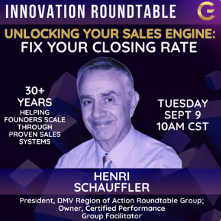 Join Executive Mentor, Henri Schauffler in the September Gildre Innovation Roundtable Session: "Designing Your Repeatable Sales Engine: Discovering Why You're Not Closing At The Rate You Need".
