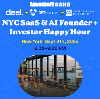 NachoNacho - The B2B SaaS & AI + Services Marketplace, Deel, Gunderson Dettmer, and GPT Trainer are hosting this exclusive Founder + Investor happy hour event alongside key high-profile brands and VC firms. This networking event will be exclusively for SaaS & AI Founders, C-Suites, investors, tech media, and tech leaders (partnership leaders are definitely welcome, too). This event will include sponsored drinks, but not food. Please grab a bite to eat before or after the event.